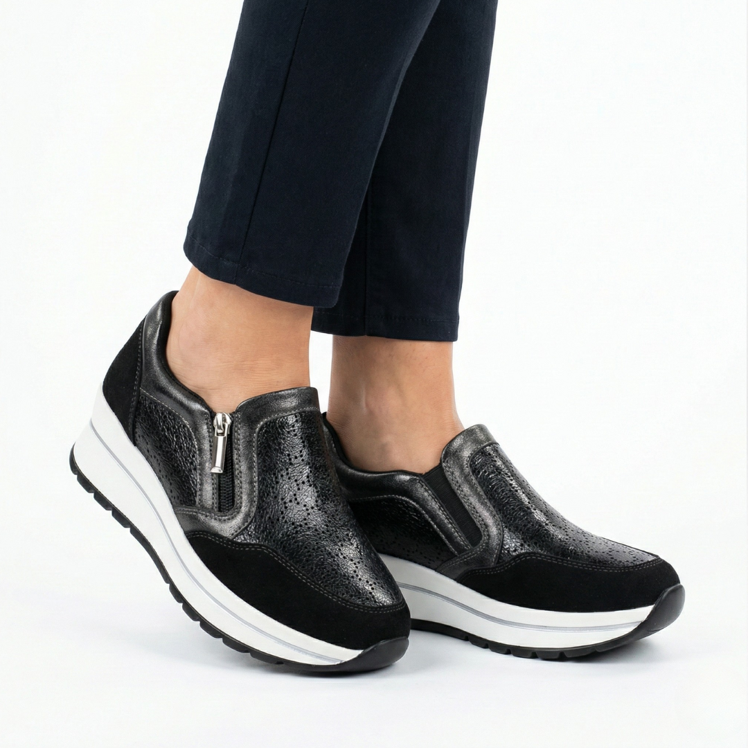 Modello: Candi - Scarpa comfort con Texture Shimmer e Zip