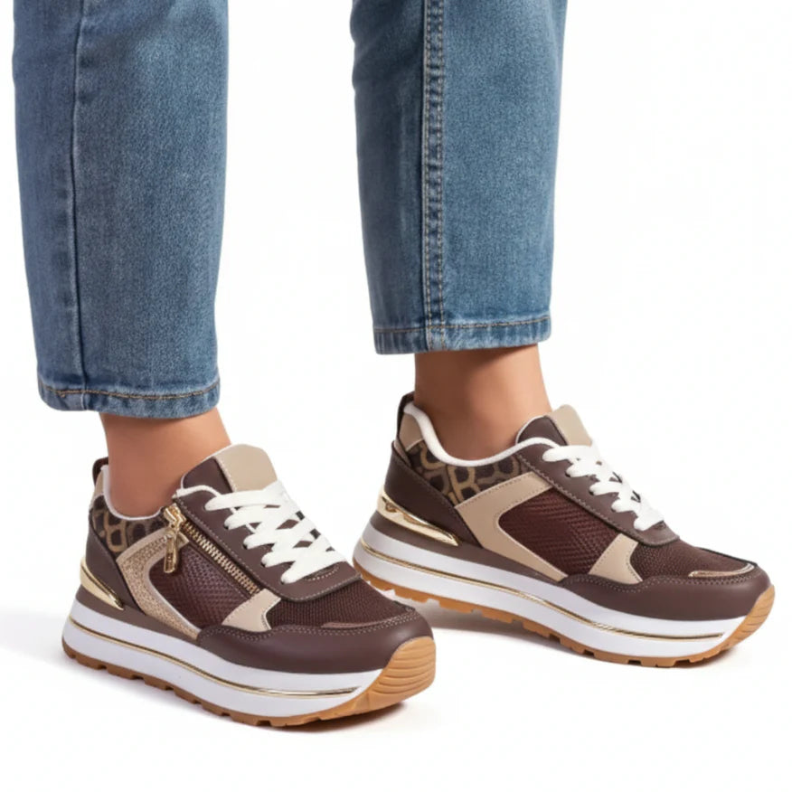 Modello: Verena - Sneaker Comfort Luxury con Zip e Dettagli Gold.